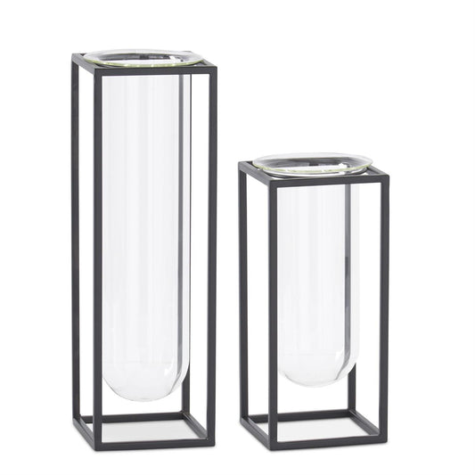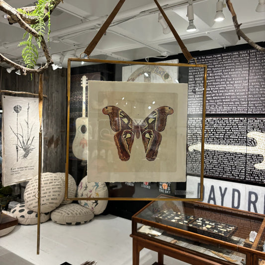 Glass & Brass Metal Wall Hanging Frame w/ Brown Suede
