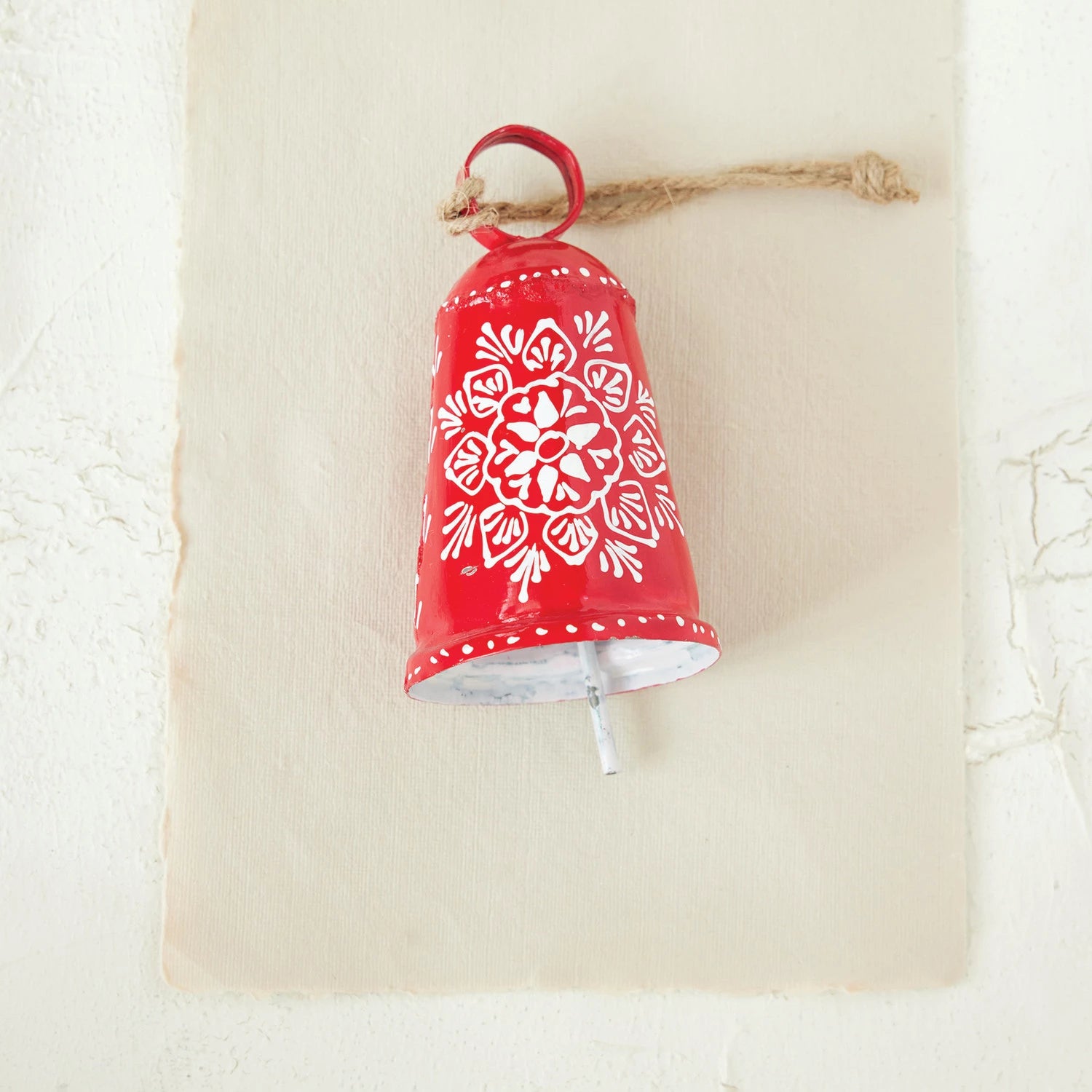 This 5-inch hand-painted metal bell ornament features a charming red and white design that adds a festive touch to any holiday décor. Crafted with care, each bell showcases unique painted details and a vintage-inspired finish. A jute loop makes it easy to hang on a tree, wreath, or doorknob for a cheerful seasonal accent.