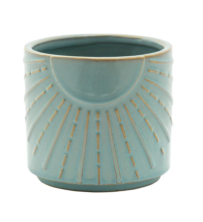 The Blue Sun Cache planter boasts a striking design with its sleek cobalt blue finish reminiscent of a serene sky meeting golden sunrays. Crafted from durable ceramic, it offers a perfect home for your favorite botanical beauties, blending seamlessly with modern or eclectic decor styles. Elevate your indoor garden with this eye-catching planter, adding a touch of tranquility and elegance to any space.