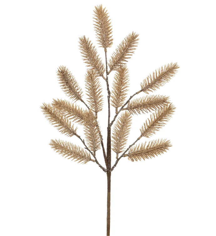 The Glitter Champagne Pine Spray features lush pine branches dusted with shimmering champagne-colored glitter for an elegant, festive touch. Perfect for adding sparkle to holiday wreaths, centerpieces, or mantel displays. Its delicate shimmer catches the light beautifully, creating a warm and inviting atmosphere.