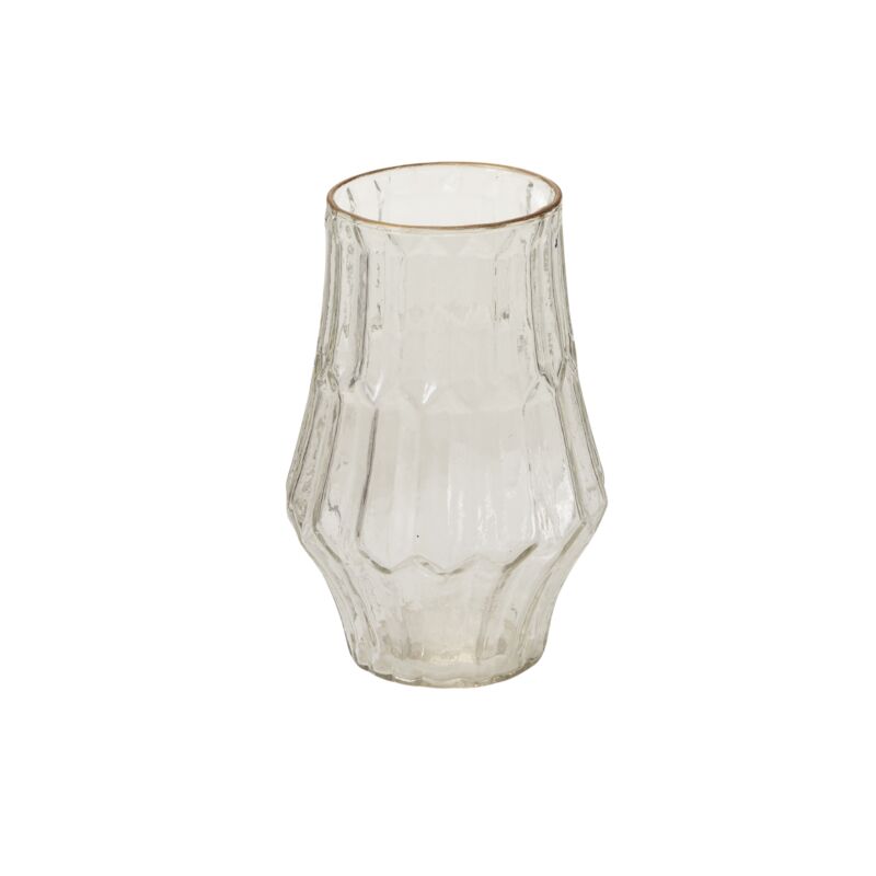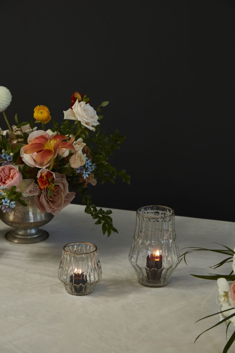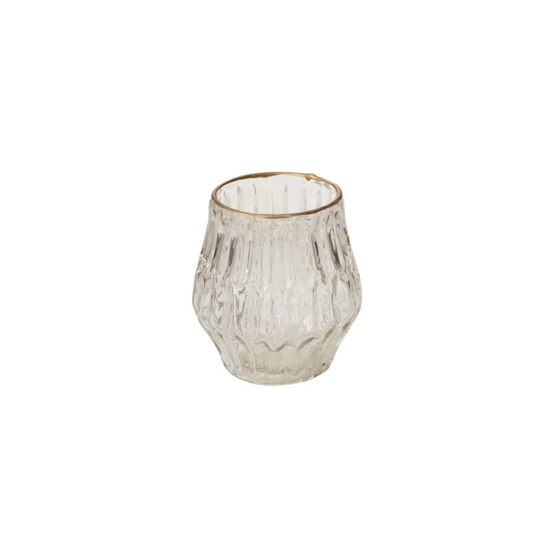 Like a beautiful find from an antique shop, the gold-rimmed, textured glass Katherine Votive offers an elegant lift & gentle ambience to centerpieces, whether filled with a floral bunch for a pop of color or candle for a beautiful, fragmented glow.