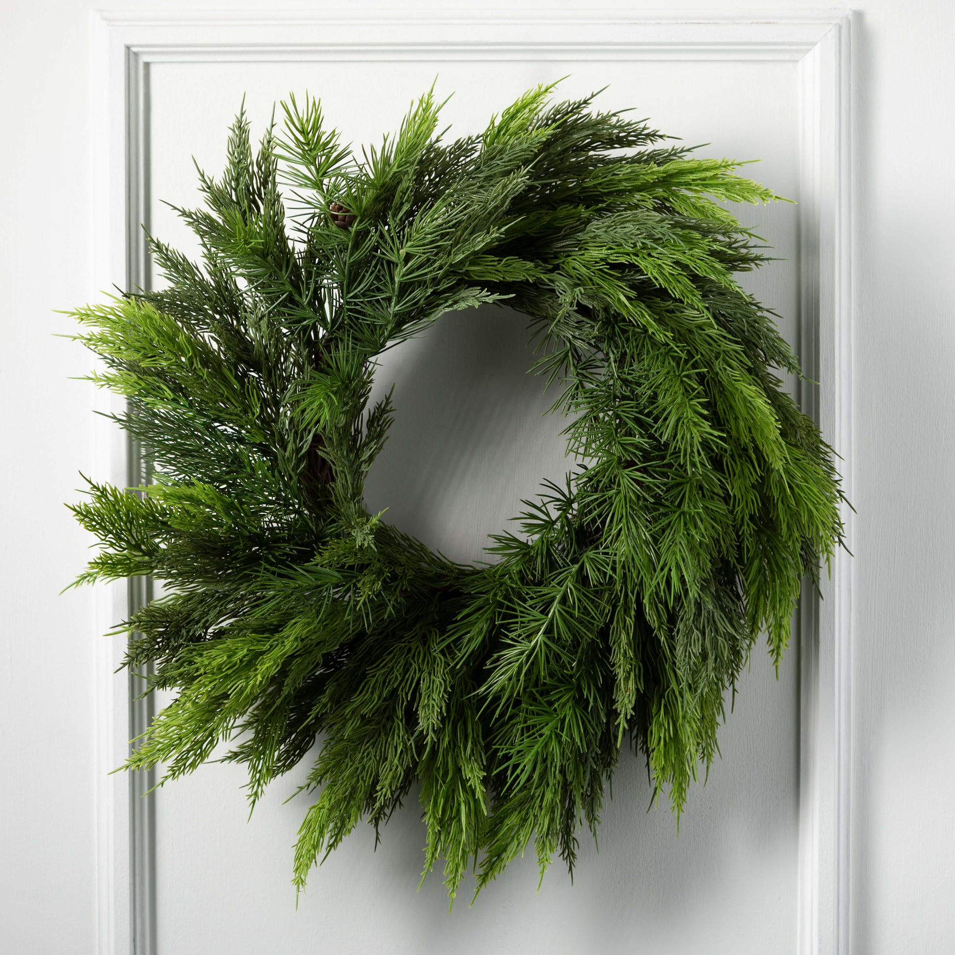 Bring natural elegance to your décor with this Lush Green Cedar Wreath. Featuring lifelike cedar greenery in rich, vibrant tones, it offers a timeless look that works beautifully for the holidays or year-round display. Hang it on a door, wall, or mantel to add a fresh, woodland-inspired touch to any space.