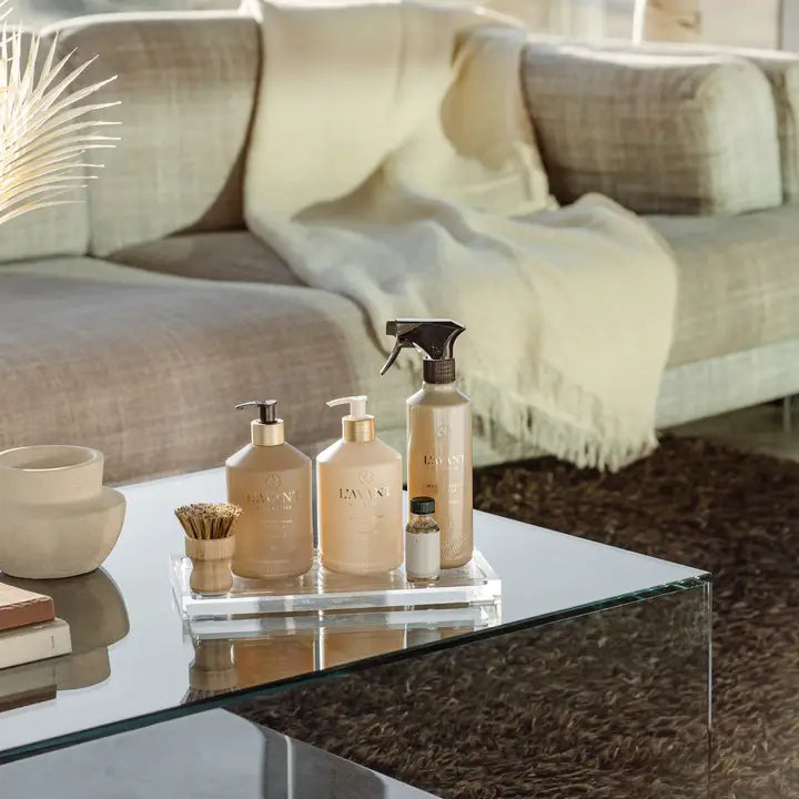 Three times the convenience. With our Multipurpose Surface Cleaner Concentrate, refilling your elegant L’AVANT 16 oz. spray bottle is a breeze. Packaged in 1 oz. eco-luxe glass bottles, going the refill route makes our powerhouse plant-based cleaner even more responsible. Less plastic waste means you’re being gentler on the environment, and this trio of beauties is easy to ship and easy to store. A warm, refined fragrance where bold sandalwood creates a haven of elegance, evolving into a luxurious blend of cardamom, amber, and cedar.
