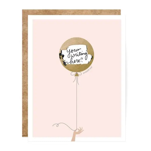 The Pink & Gold Balloon Scratch-off greeting card features a charming design with pink and gold balloons against a light background, exuding a festive and celebratory vibe. It includes a scratch-off area where personalized messages or surprises can be revealed, adding an interactive element to the card. Perfect for birthdays or special occasions, it combines elegance with a playful twist for a memorable greeting experience.