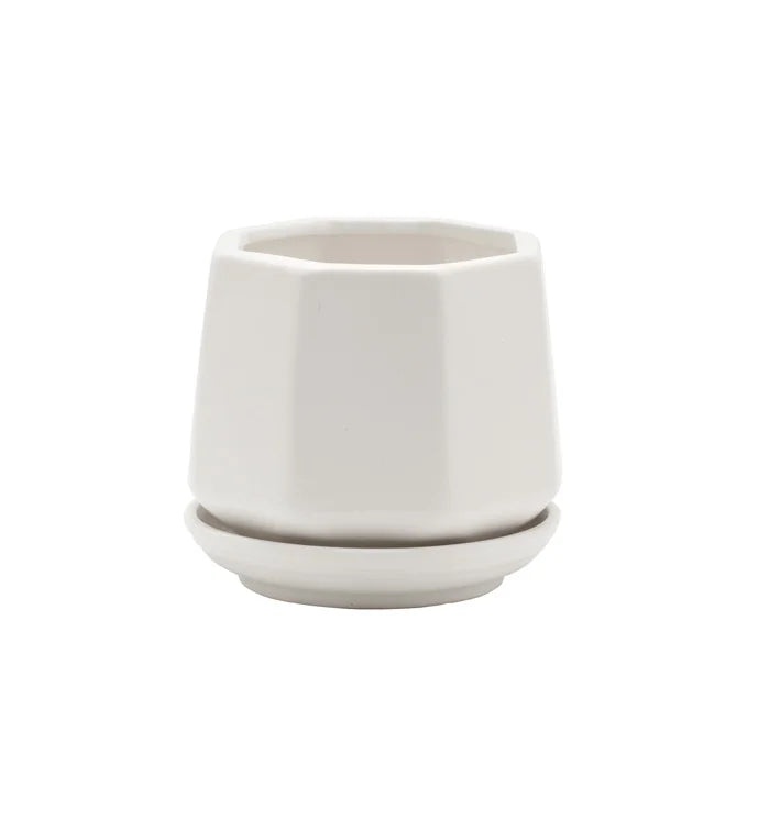 The White Hex Planter brings modern elegance to any indoor or outdoor space with its sleek hexagonal design and crisp white finish. Crafted from durable materials, this planter provides a stylish home for your favorite plants while effortlessly complementing any decor scheme. Its geometric shape adds a contemporary touch, making it a standout piece in gardens, patios, or living rooms.